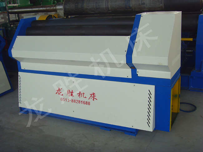 該機結構形式為三輥非對稱式,上輥為主傳動,下輥垂直升降運動,以便夾緊板材,并通過下輥齒輪與上輥齒輪嚙合,同時作為主傳動;邊輥作傾升降運動,具有預彎和卷圓雙重功能。結構緊湊,操作維修方便。