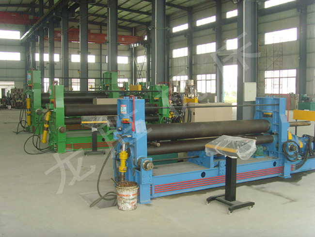 該機屬于液壓型三輥卷板機,用于常溫狀態下將各種容器用碳鋼、低合金鋼一次上料后不需調頭即完成板材端部預彎、卷圓和矯圓等工序。